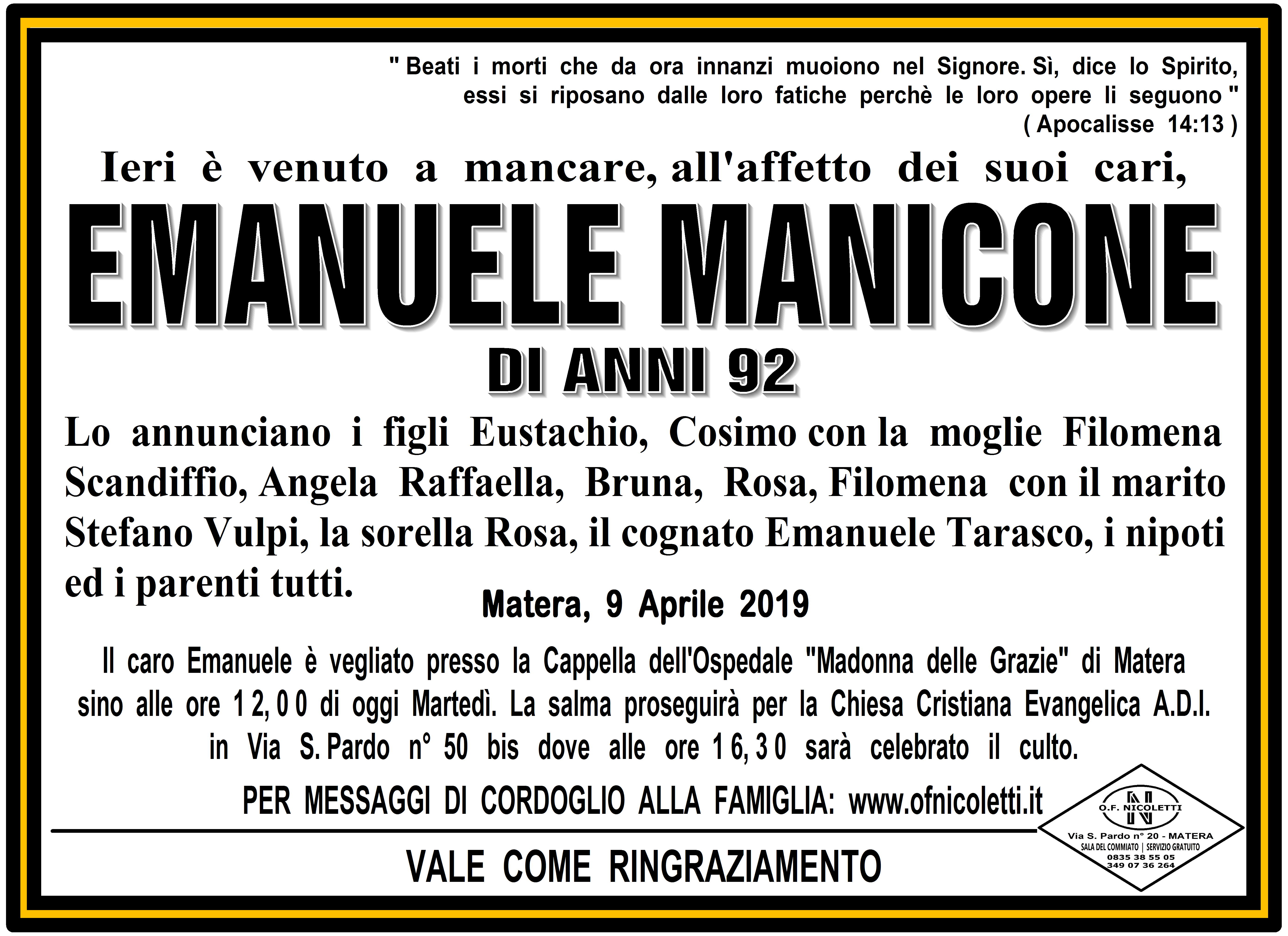 vi inviamo le nostre piu sentite condoglianze. I nostri pensieri e preghiere sono con voi in questo momento difficile. Zio Emanuele sara davvero mancato. Abbracci sentiti a cuore inviati da Toronto, Canada,