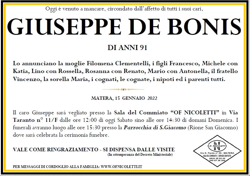 Un commento su “GIUSEPPE DE BONIS