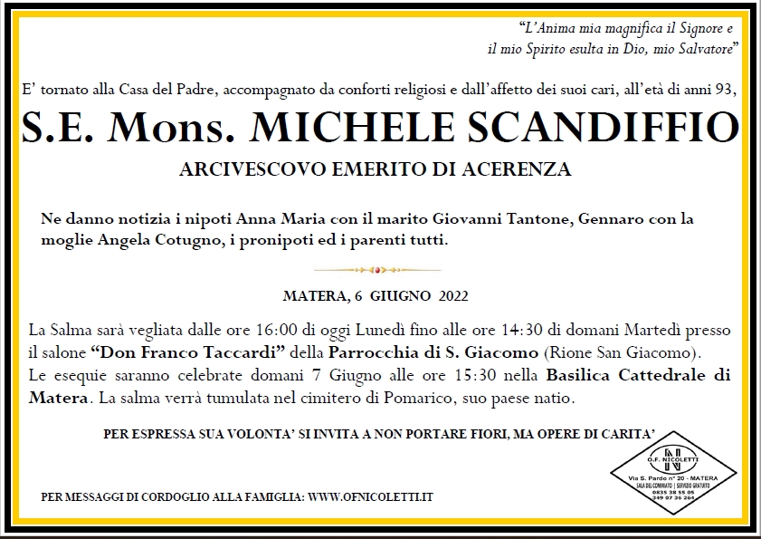 Un commento su “S.E. Mons. Michele Scandiffio